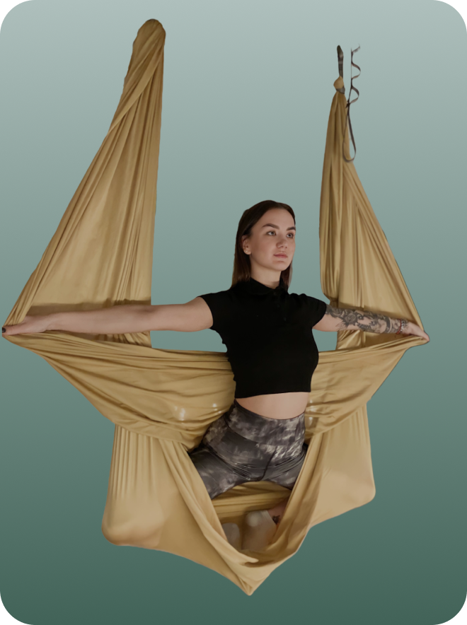 Сертифицированный преподаватель по аэройоге. Прошла обучение в центре йоги "Прана" в 2023 году.